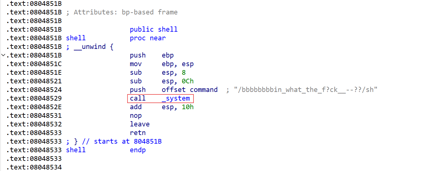 这里我们直接用 shell 函数中汇编 call system 语句的地址