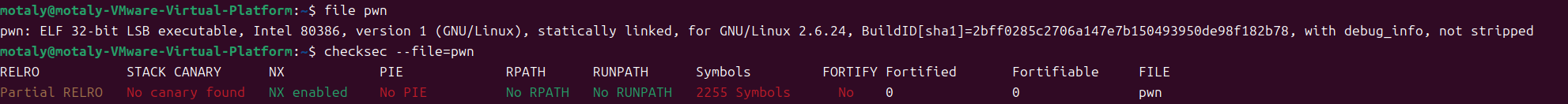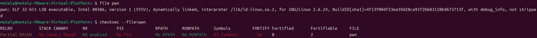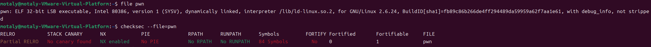 motaly@motaly-VMware-Virtual-Platform:~$ gdb pwn GNU gdb (Ubuntu 15.0.50.20240403-0ubuntu1) 15.0.50.20240403-git Copyright (C) 2024 Free Software Foundation, Inc. License GPLv3+: GNU GPL version 3 or later <http://gnu.org/licenses/gpl.html> This is free software: you are free to change and redistribute it. There is NO WARRANTY, to the extent permitted by law. Type "show copying" and "show warranty" for details. This GDB was configured as "x86_64-linux-gnu". Type "show configuration" for configuration details. For bug reporting instructions, please see: <https://www.gnu.org/software/gdb/bugs/>. Find the GDB manual and other documentation resources online at: <http://www.gnu.org/software/gdb/documentation/>.