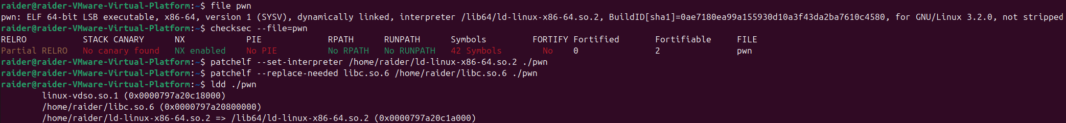 | from pwn import * context(os='linux', log_level='debug', arch='amd64') # io = remote('node5.buuoj.cn',27371) io = process('/home/raider/pwn') elf = ELF('/home/raider/pwn') libc=ELF('/home/raider/libc.so.6') #gdb.attach(io,'b *0x40124F\nc') def xilker(x, code=95): return f"\x1b[{code}m{x}\x1b[0m"